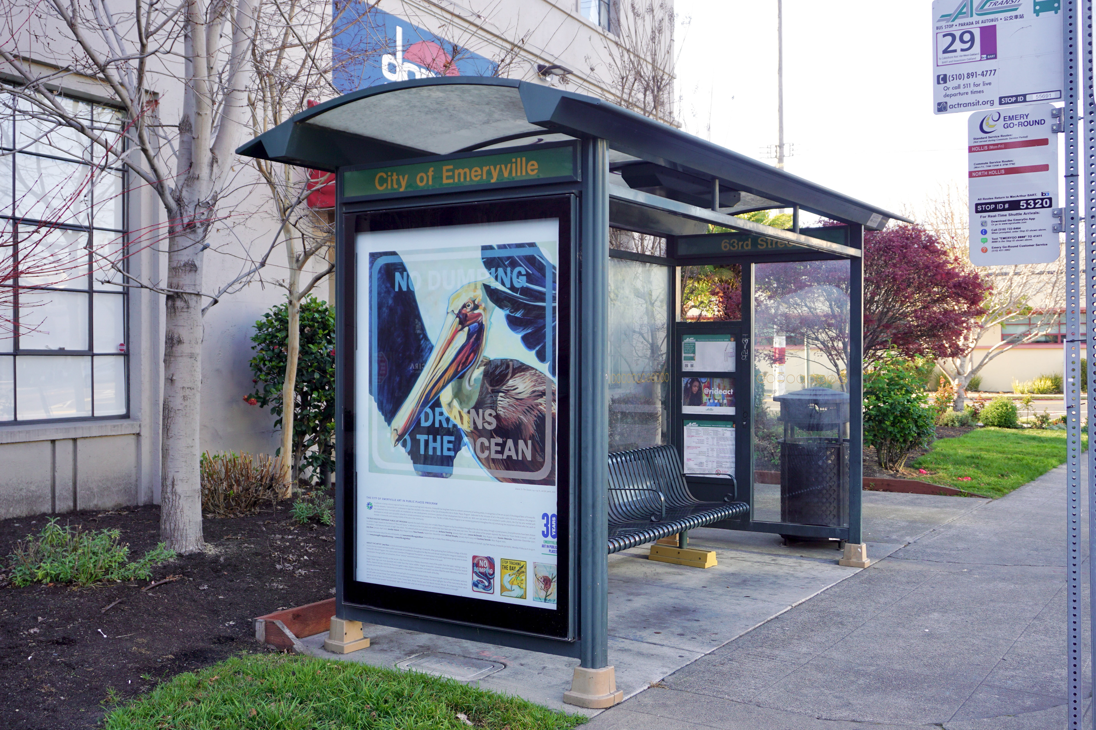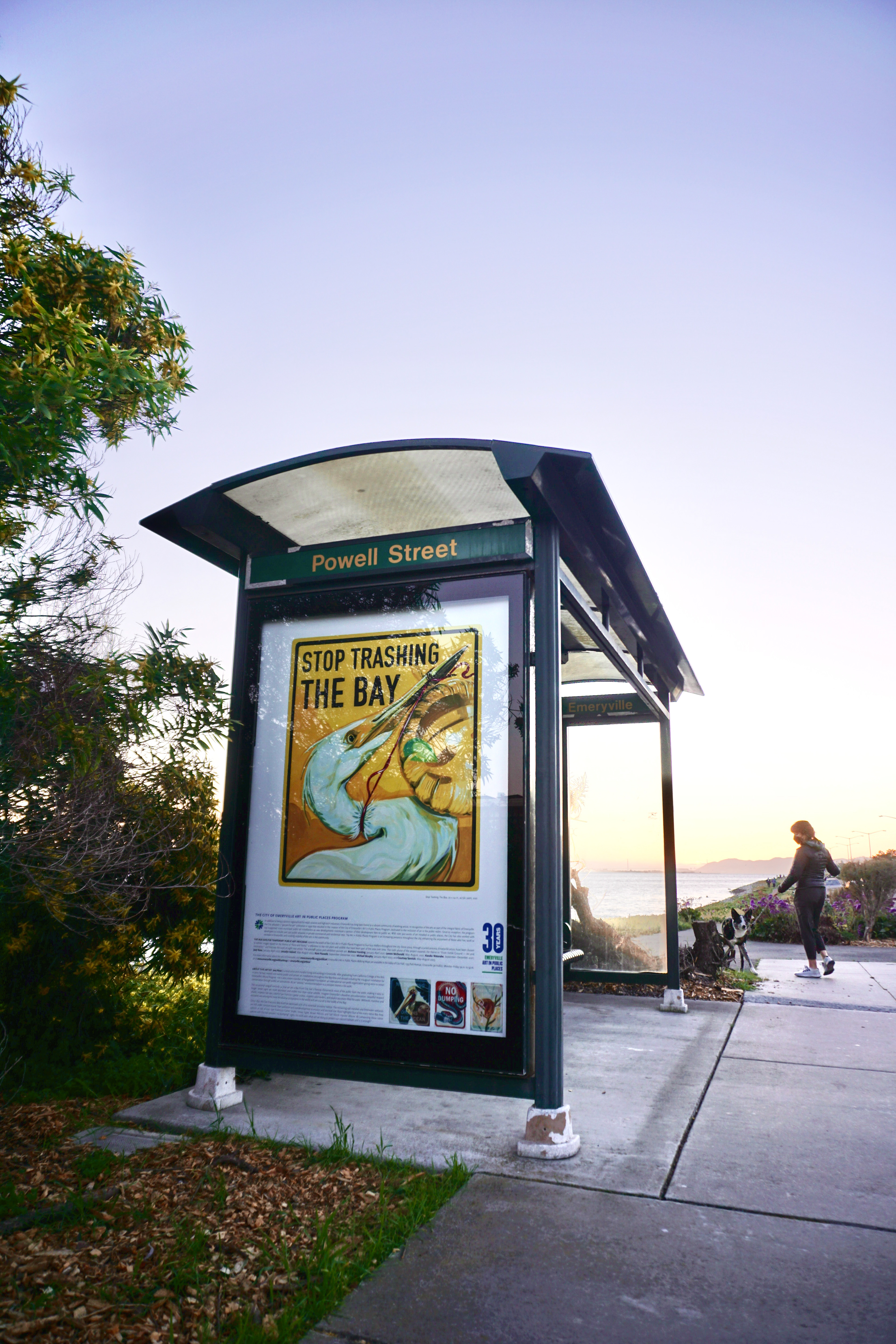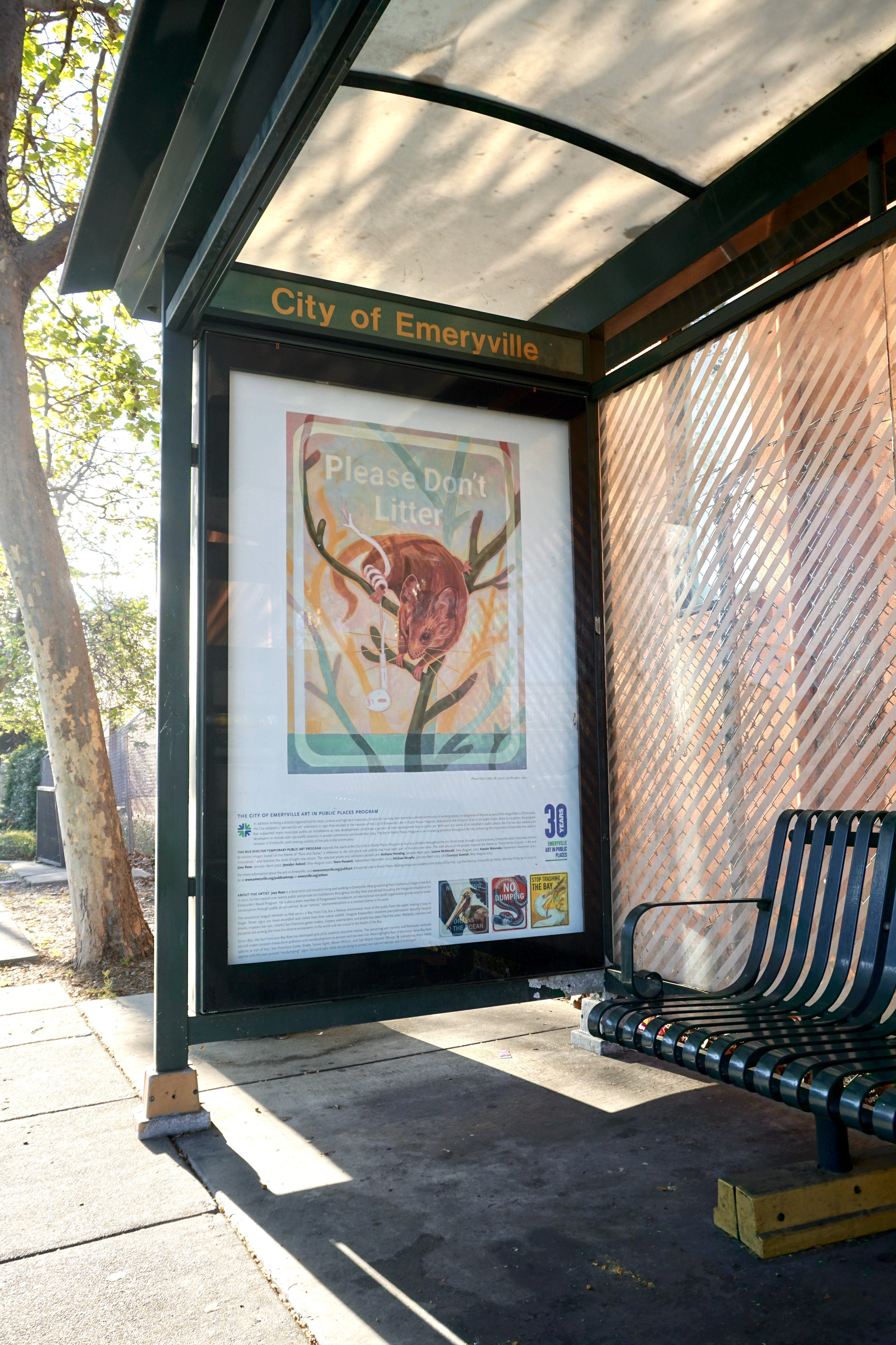 A series of paintings installed on Bus Shelters across the city of Emeryville to promote anti-littering and bring awareness to species at risk.
